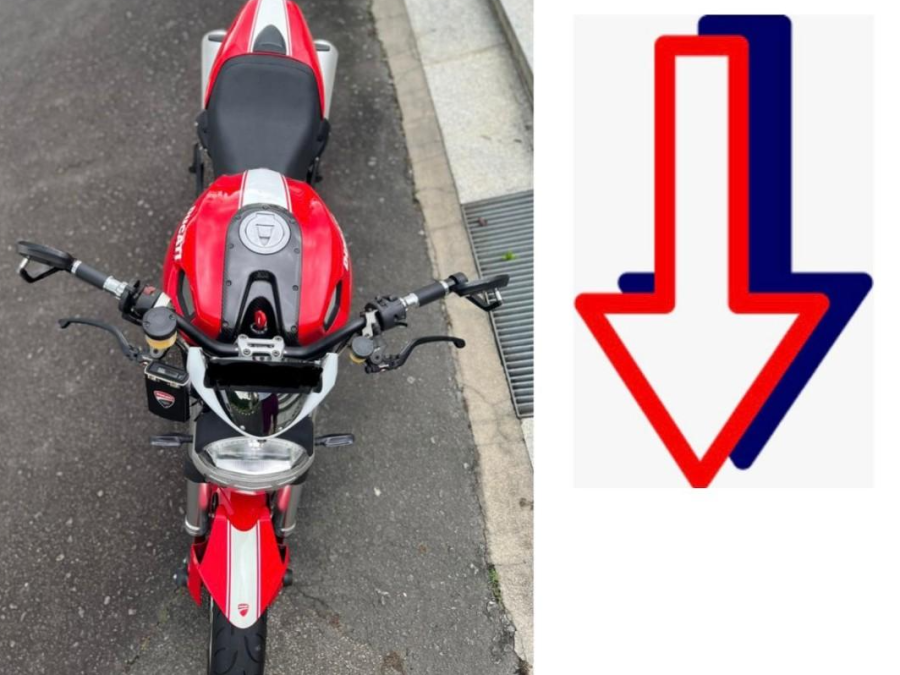 Ducati red with racing stripes completing a white arrow, appreciate its L-Twin, Dry Clutch & Single Swing-arm like all Ducati enthusiasts. Photo ready anytime.